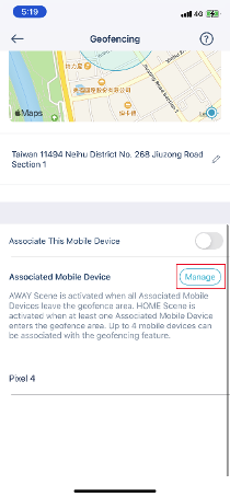 You can have up to four mobile devices associated with Geofencing. Should you reach the maximum number of devices, you can remove devices that you do not use anymore from the associated devices list. To manage associated devices, please follow the steps below: