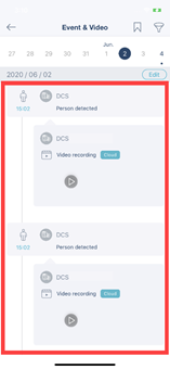 - Seleccione una fecha. De forma predeterminada, muestra los eventos y vídeos del día actual.