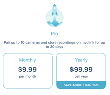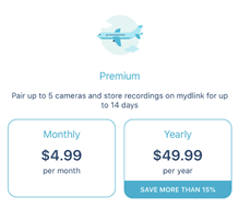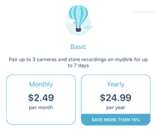 D-link propone sei piani di registrazione cloud. La durata di archiviazione delle registrazioni nel cloud e il numero di videocamere attivabili dipendono dal piano di abbonamento scelto.